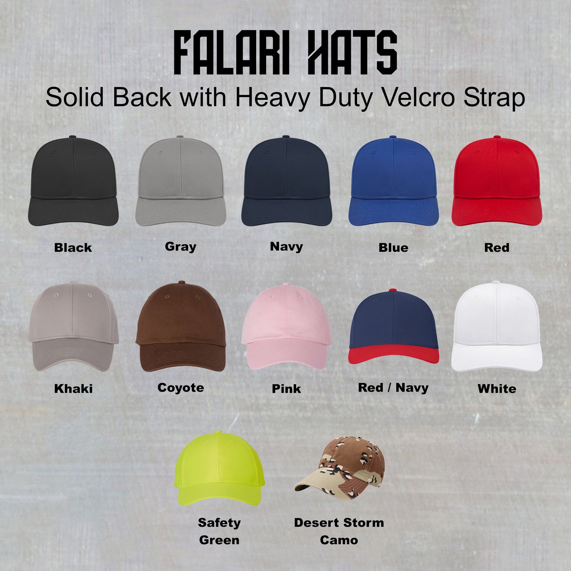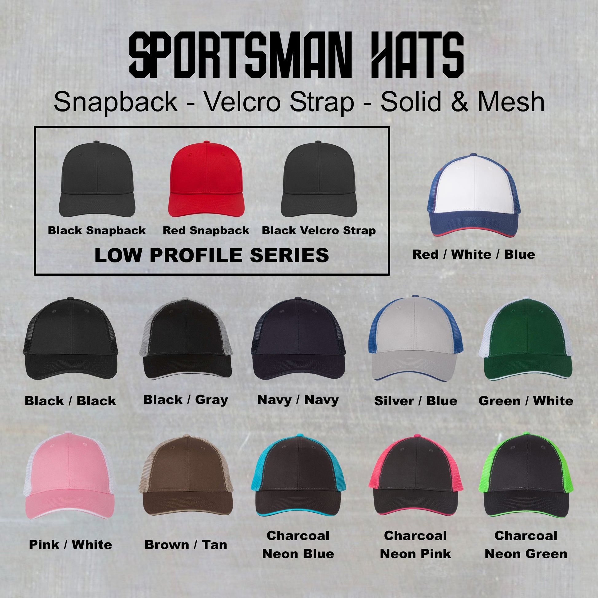 If you select the Sportsman or Falari option, make sure to put what color hat you want in the notes when you checkout.