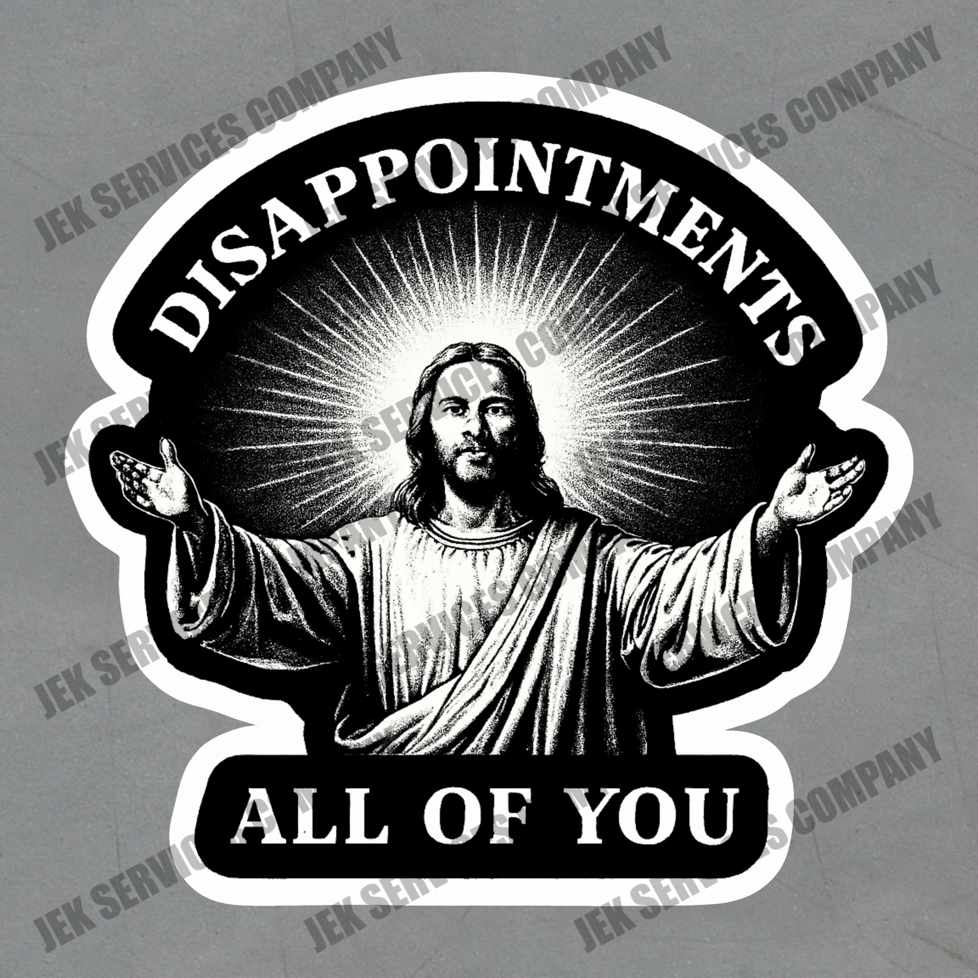 Funny Disappointed Jesus Sticker – Religious Humor Vinyl Decal, Waterproof