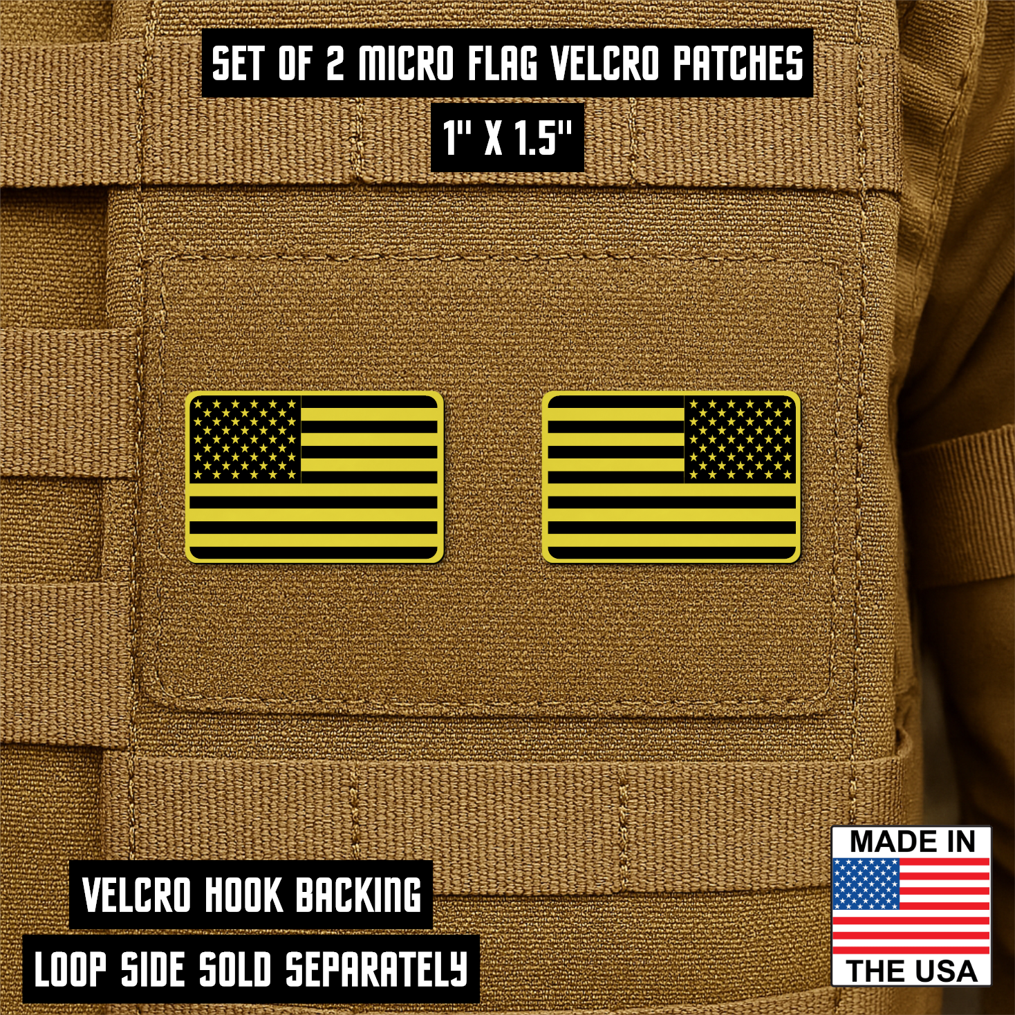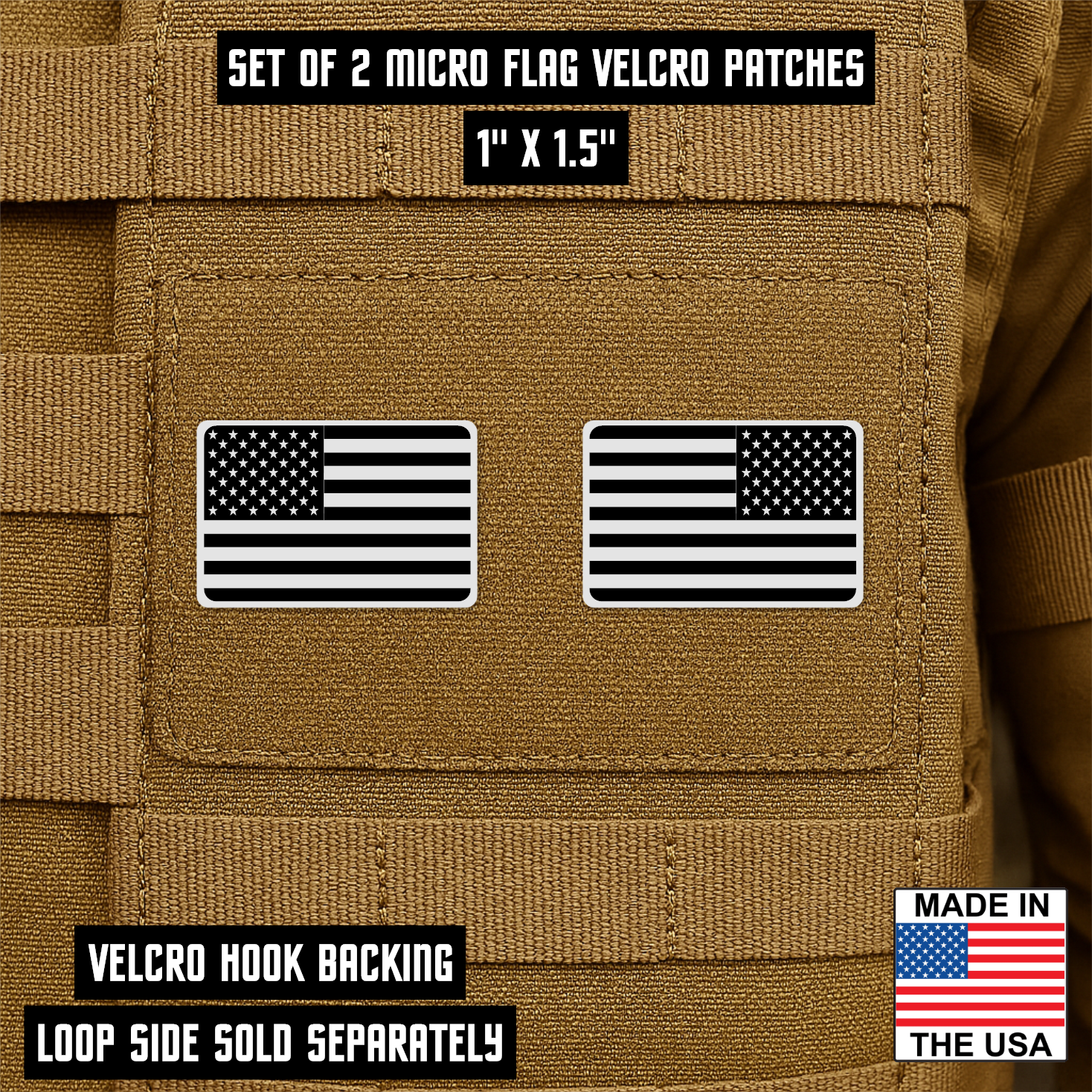 Mini American Flag Tactical Engraved Patch 1"x1.5" Hook & Loop | Set of 2 | Made in USA
