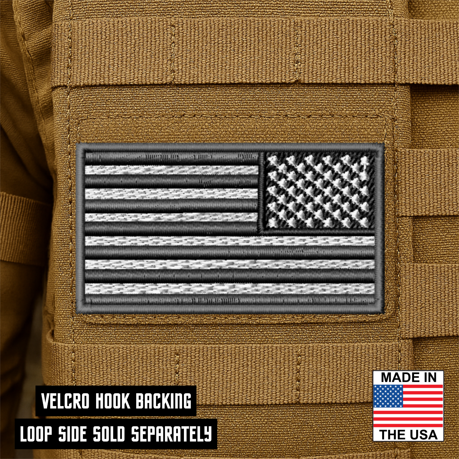 Reverse American Flag Tactical Gray Patch 2"x3.5" Hook & Loop | Made in USA